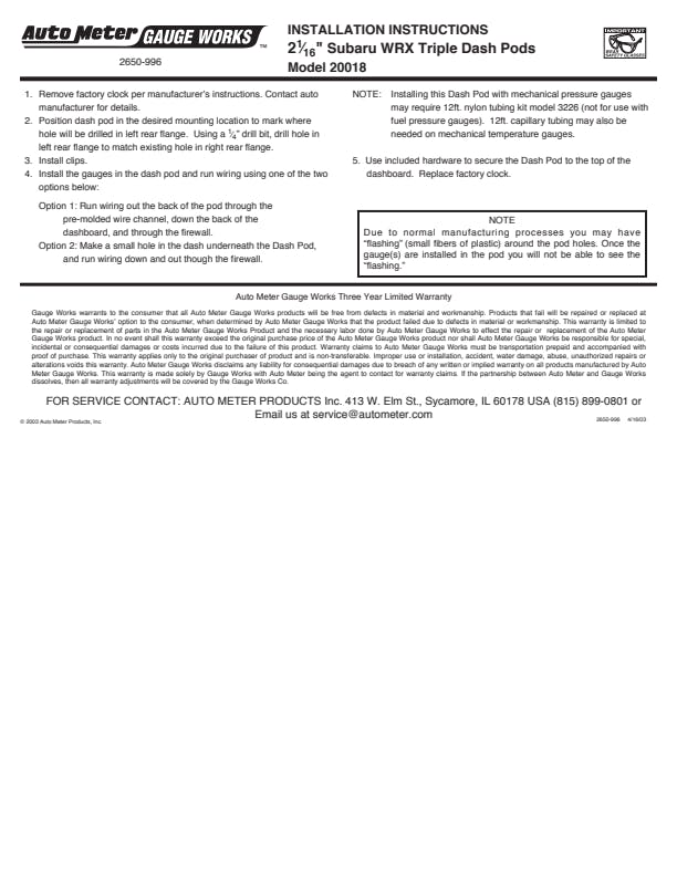 - For Use w/2-1/16 in. Auto Meter Gauges